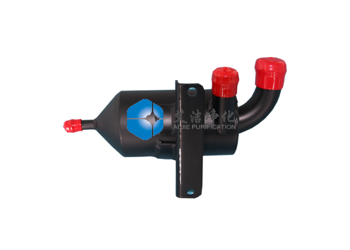 艾潔凈化生產(chǎn)的旋風(fēng)式油氣分離器是讓氣液混合氣經(jīng)過切向進氣道或是螺旋進氣道進入分離器內(nèi),使混合氣在分離器內(nèi)旋轉(zhuǎn)運動,以此產(chǎn)生離心力來實現(xiàn)油滴的分離,它的分離機理與主動離心式油氣分離器相同,只是不需外界提供動力。